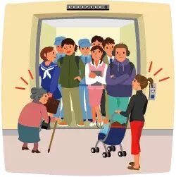 电梯人员拥挤的时候请让老人和儿童优先,当电梯超载的时候,电梯不动,请主动退出电梯。