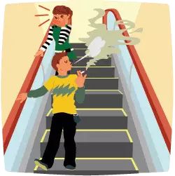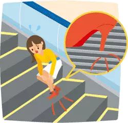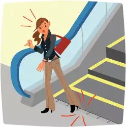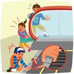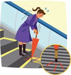 穿着比较长的衣物的时候,千万注意不要让它接触到扶梯的梳齿板,衣服一旦被卷进去是相当危险的。